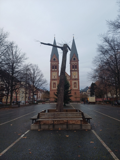 -> Herbst 2021: gelungene Verschönerung, um den Platz zur zur Bonifatiuskirche zu öffnen.