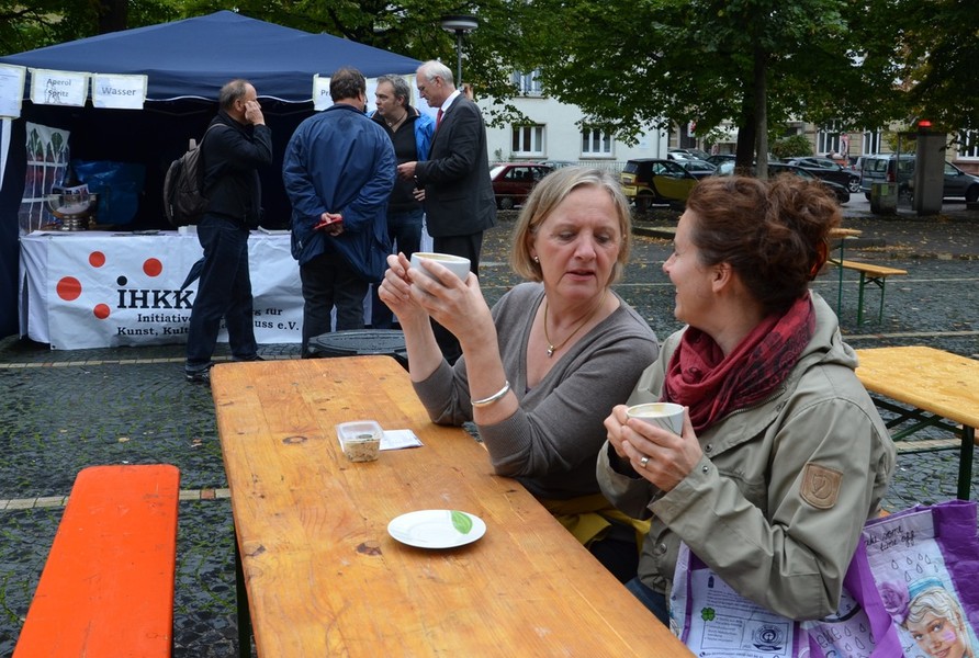 Auch ohne Musik und mit einem kleinen Regenschauer der vielleicht letzte Samstag des goldenen Oktobers in 2013. Reichlich genutzt von der Weststädter/innen. So wie letztes Jahr ist der Samstagsmarkt im Oktober sehr belebt, ganz nach unserem Motto: Einkaufen, Genießen und Freunde treffen!