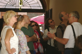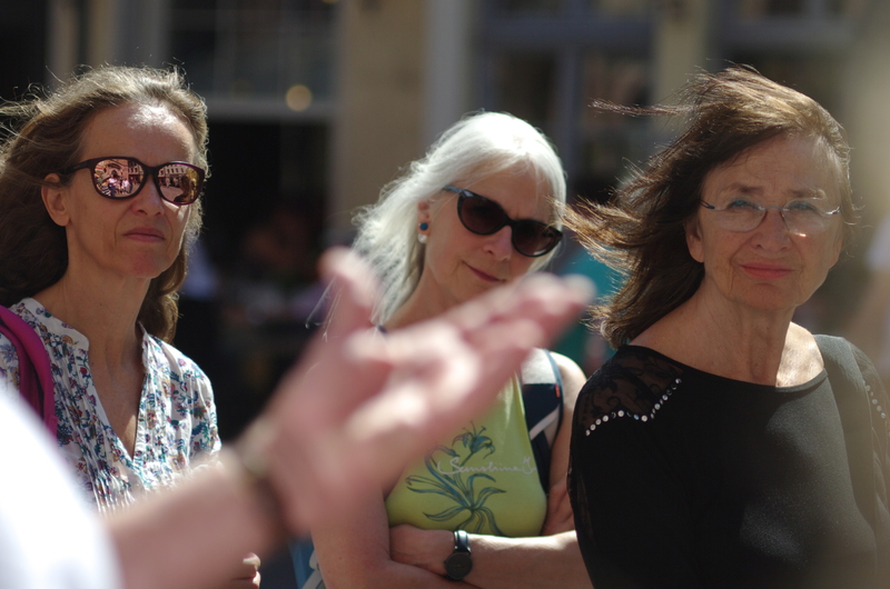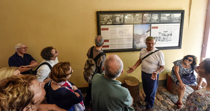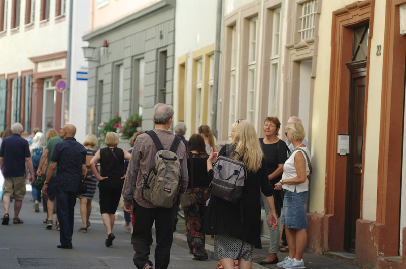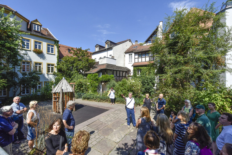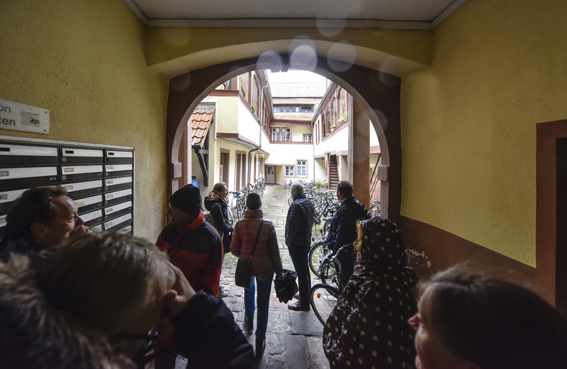 Über die Kettengasse wird ein saniertes Wohnquartier beim Montpellier Haus besichtigt und danach das frühere Bäderviertel durchquert.