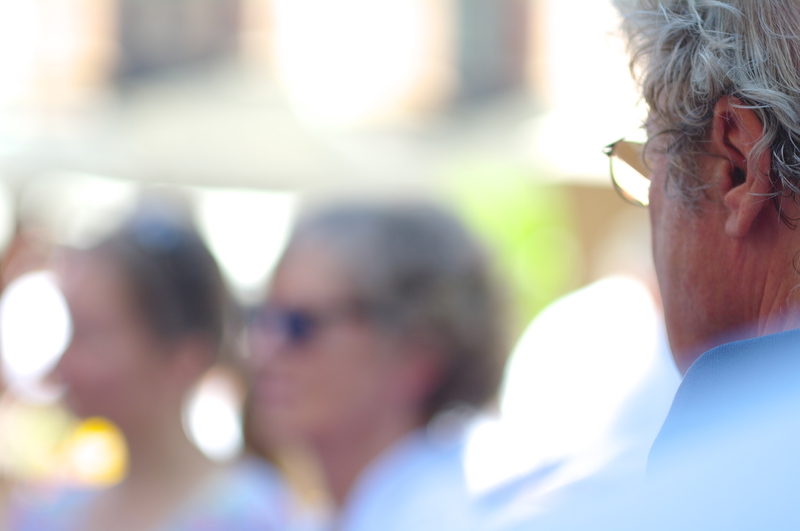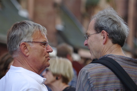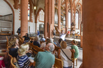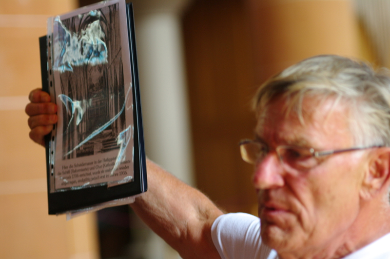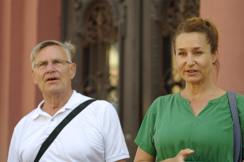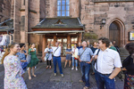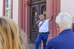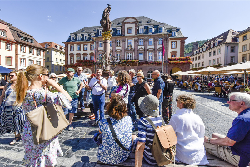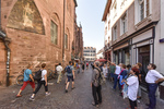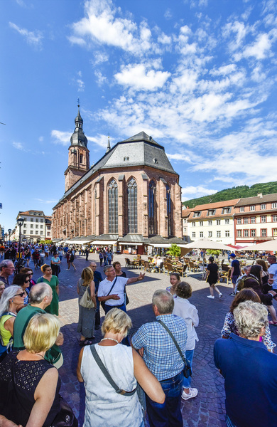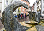 Es geht über den Marktplatz zwischen Rathaus und Heiliggeistkirche zur Außenfassade des Hotels „Ritter“ in die Heiliggeistkirche.