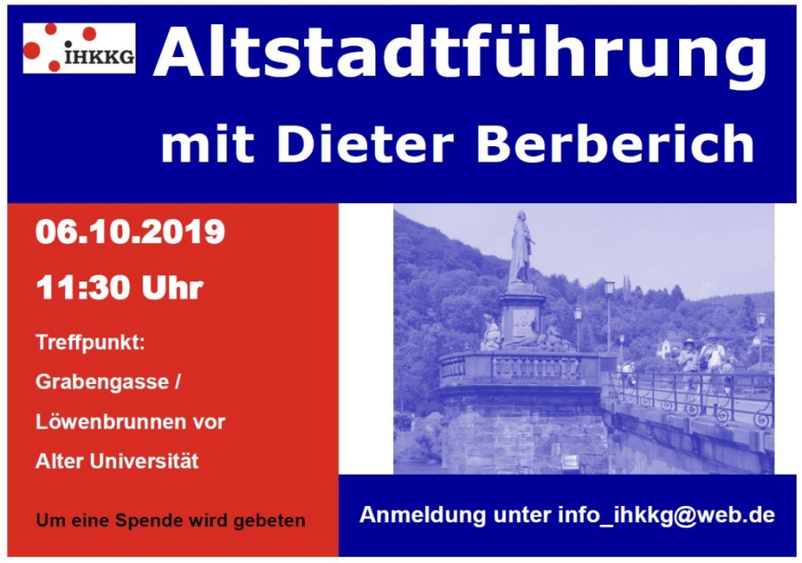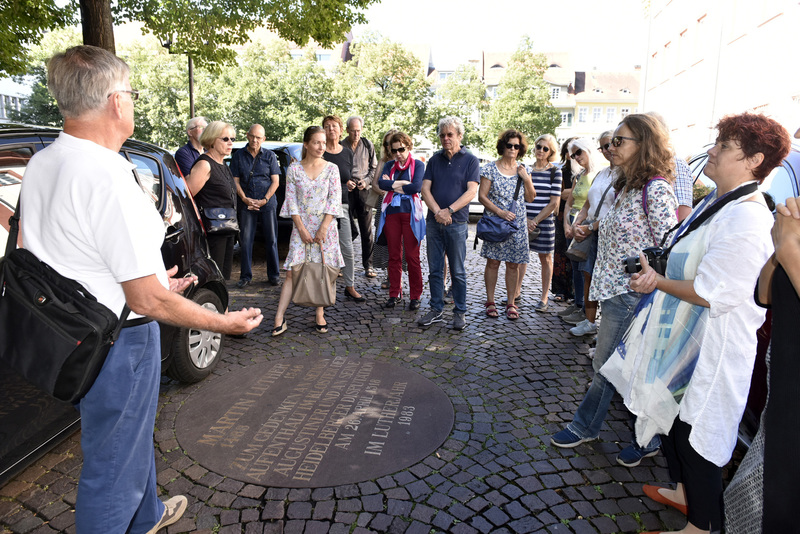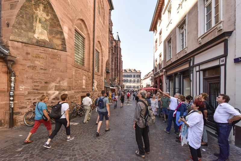 Die Führung beginnt in der Grabengasse am „Löwenbrunnen“ vor der Alten UNI-Aula. Der Weg führt über das ehemalige Augustiner Klostergelände zum Marsiliusplatz / Hexenturm bis in das Jesuitenviertel.