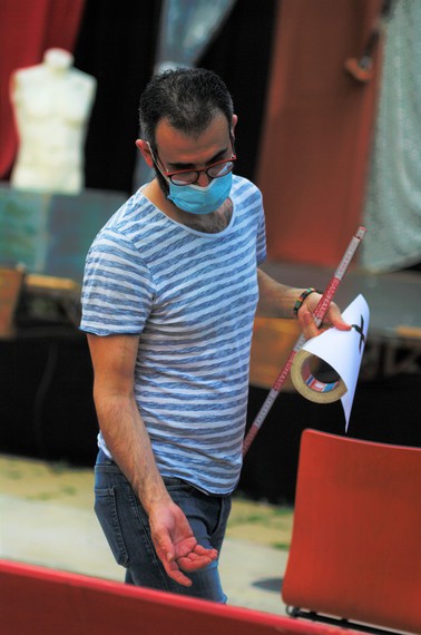 Er fügt Zitate aus Briefen des Paares in den Text und musikalische Auszüge aus Beethovens Werk ein. In der Inszenierung werden so Sprechtheater, Musik und Tanz miteinander verwoben. Die Umsetzung der Infektionsschutzmaßnahmen wirkt als komisch - poetisches Moment.