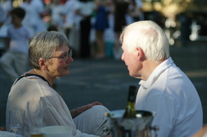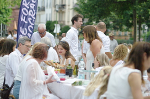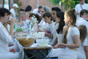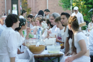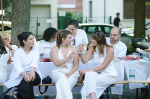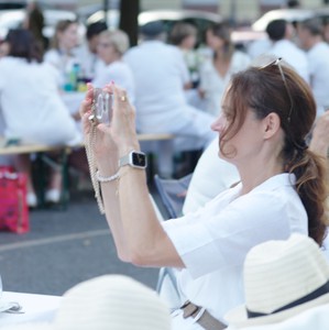 Man packe seinen Picknick-Korb mit Geschirr und vielem schönem Essbaren voll, hole aus dem Kleiderschrank alles, was weiß ist und ziehe es sich an, begebe sich mit einem Klapptisch und -stühlen und weißer Tischdecke an dem Veranstaltungsort und suche sich dort ein Plätzchen, wo bereits andere weiß gedeckte Tisch stehen.